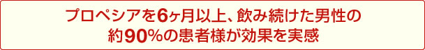 外部機関が実施した男性型脱毛症(AGA)に対するプロペシア錠服用患者の実態調査では約90%の方が効果を実感されています。
