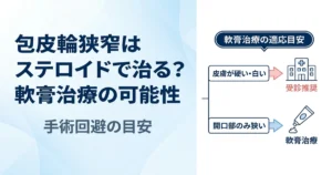 包皮輪狭窄にステロイド軟膏(リンデロン等)は有効か、塗り方や使用期間、市販薬の可否、手術との比較、BXOなど重篤化のサインまで、大人の保存的治療の要点を詳しく解説します。